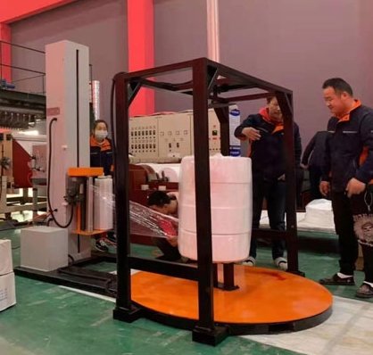 5)操作启动开关,机器开始工作:转环运转、膜架运转、